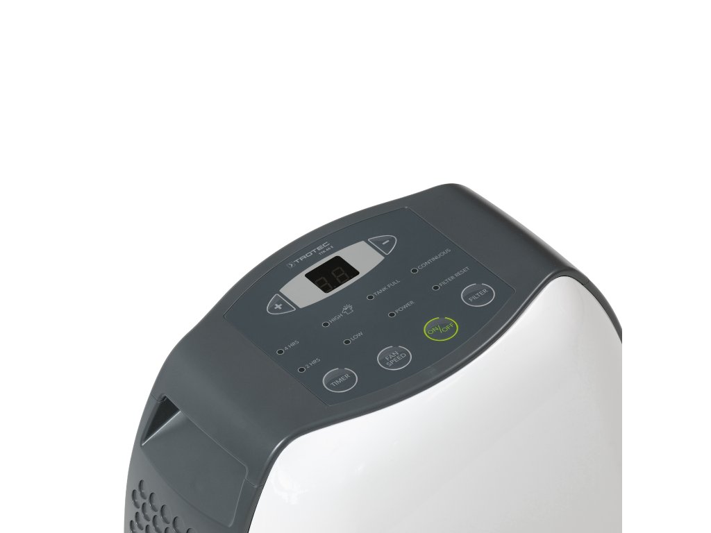 - Uplatní se i jako samostatný ventilátor. Odvlhčovač Trotec TTK 40 E má funkci Fan, která umožňuje zapnout přístroj samostatně jako ventilátor bez odvlhčování. Odvlhčovač rozpohybuje vzduch díky ventilátoru, který má za úkol nasávat vzduch přes výparník. Díky technologii odvlhčování (kondenzace kompresorem) bude vánek o při zapnutí odvlhčování trochu teplejší než okolní vzduch v místnosti (cca o 5 °C). Odvlhčovač Trotec TTK 40 E má dvě rychlosti nasávání.