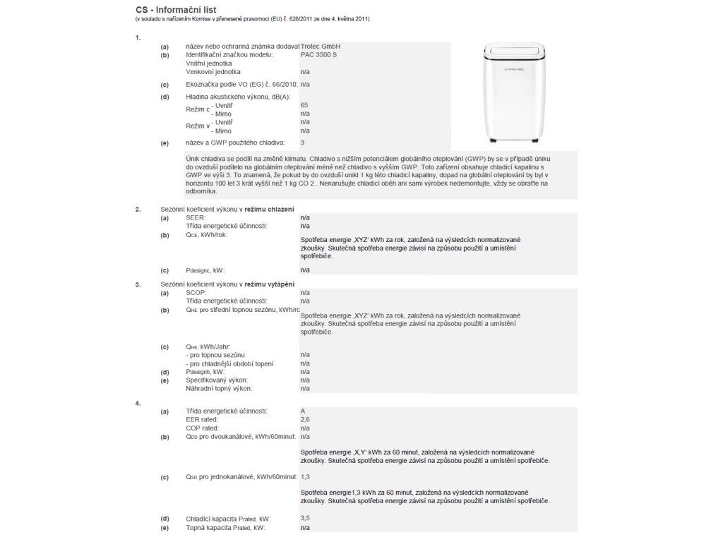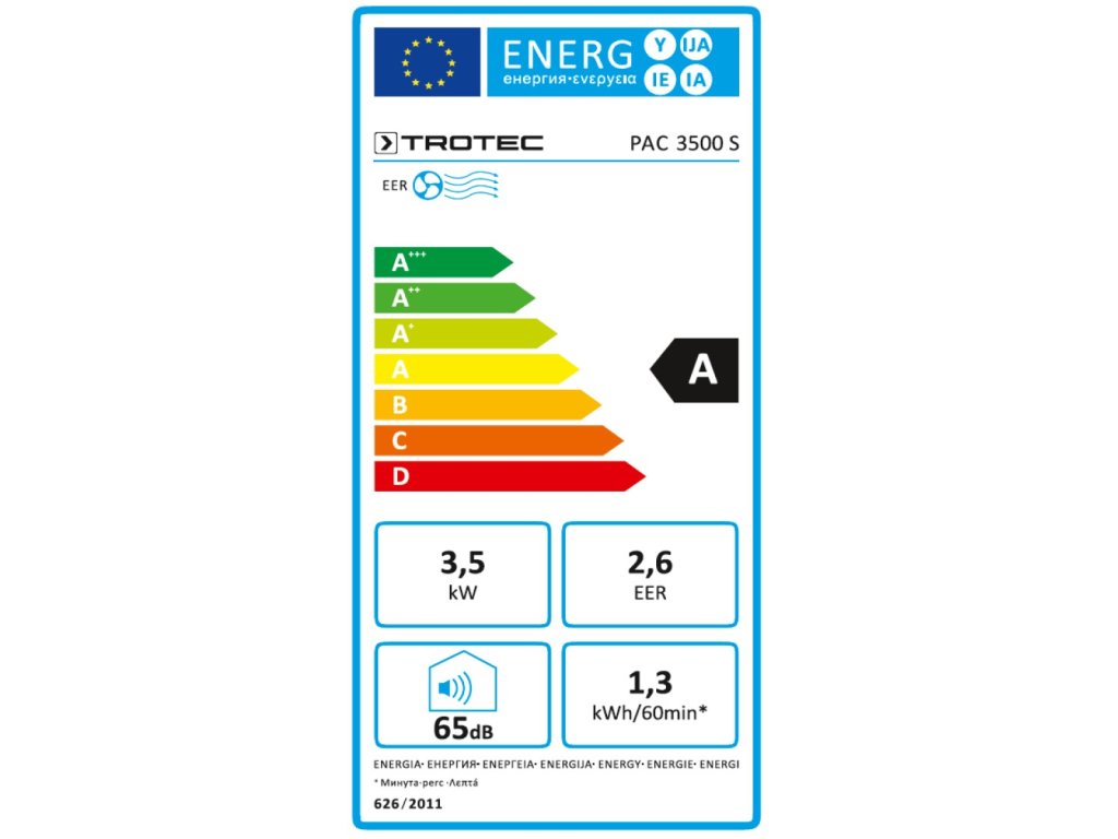 Jednohadicová mobilní klimatizace PAC 3500 S se hodí do kanceláře i do panelového bytu. Chladící výkon 12000 Btu (3,5 kW) získáte s výhodným poměrem cena-výkon. Mobilní klimatizace Trotec PAC 3500 S je v energetické třídě A.