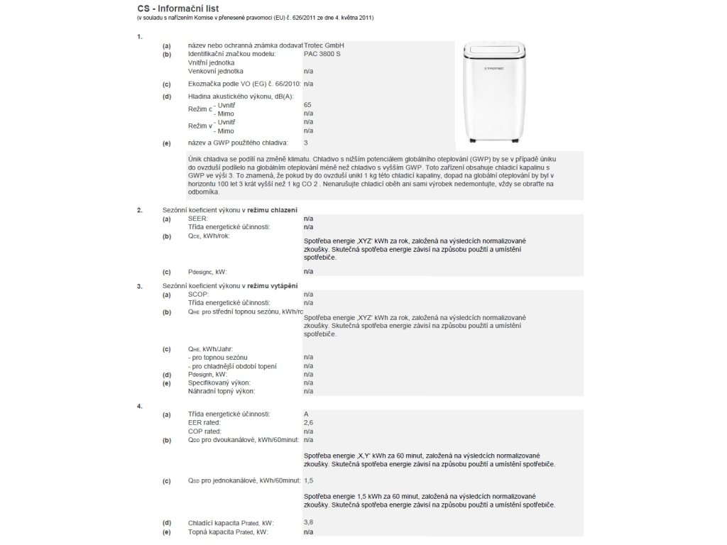 mobilní klimatizace do bytu Trotec PAC 3800 S