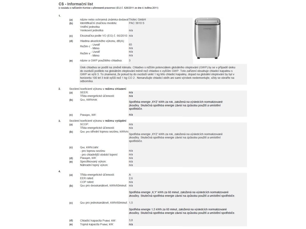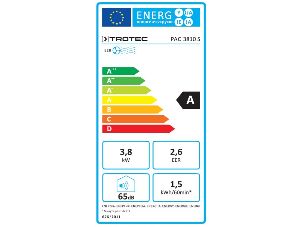 Jednohadicová mobilní klimatizace PAC 3810 S se hodí do kanceláře i do panelového bytu. Chladící výkon 13000 Btu (3,8 kW) získáte s výhodným poměrem cena-výkon. Mobilní klimatizace Trotec PAC 3810 S je v energetické třídě A.
