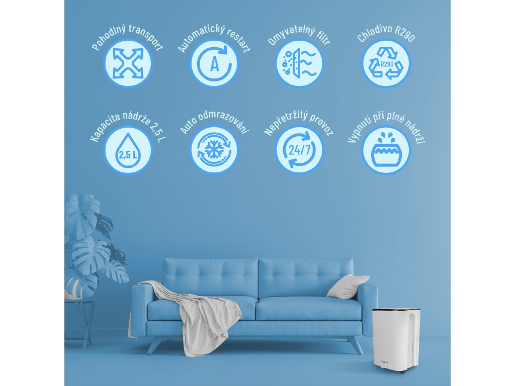 Domácí odvlhčovače vzduchu bojují proti vzniku plísní a jsou obzvláště vhodné pro lidi s respiračními problémy (astmatiky, alergiky), lidi staršího věku a děti.