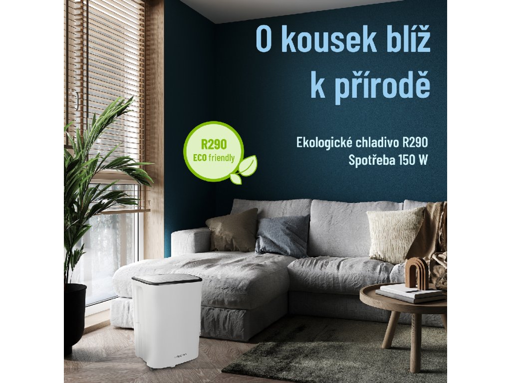 - Odvlhčovat může dosahovat odvlhčovacího výkonu 13l/denně, při teplotě 32°C a 90% relativní vlhkosti.