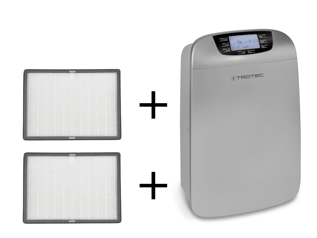 V této sadě zakoupíte odvlhčovač vzduchu s 1 HEPA filtrem a 2x náhradní HEPA filtr za zvýhodněnou cenu. Trotec TTK 110 HEPA je výkonný odvlhčovač vzduchu, který čistí vzduch s pomocí účinného HEPA filtru, nebo uhlíkového filtru. Je to ideální pomocník v boji proti vlhkosti v bytě, plísním a alergenům. Kromě vzduchového filtru má navíc ionizátor, který lze libovolně zapnout a vypnout. Také podporuje sušení prádla v bytě a dá se s ním účinně vyvětrat místnosti bez oken. Více podrobností