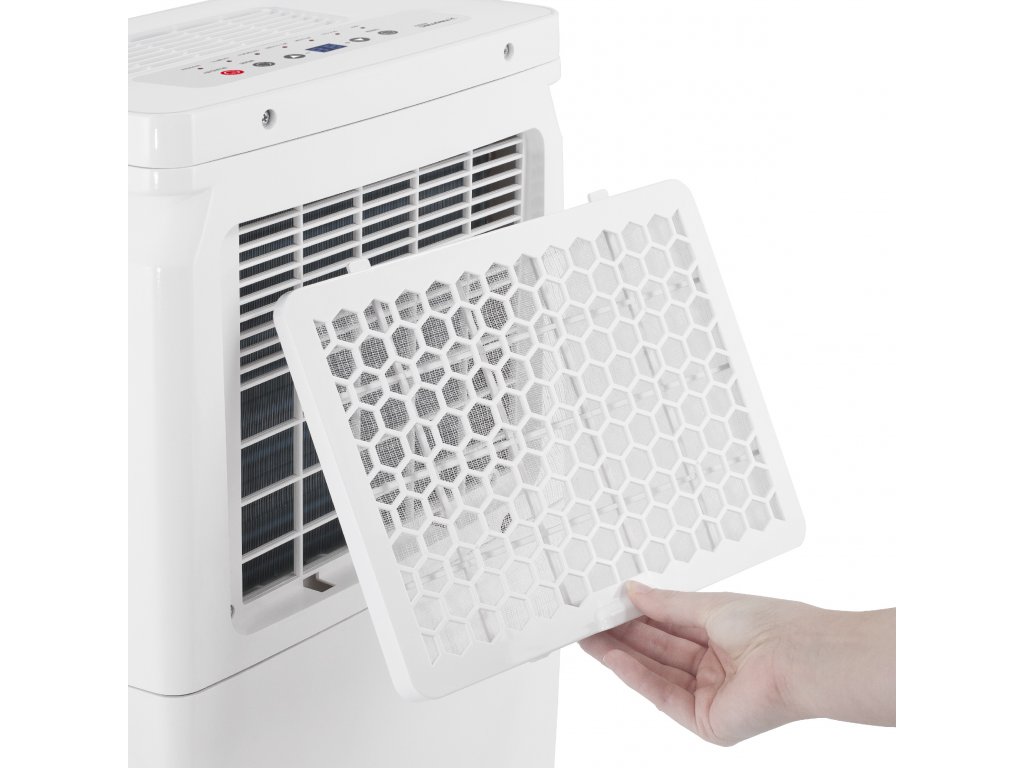 - Podporuje cirkulaci vzduchu. Odvlhčovač rozpohybuje vzduch díky ventilátoru, který má za úkol nasávat vzduch přes výparník.