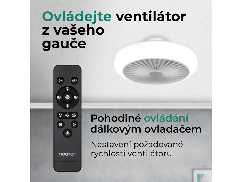 Stropní ventilátor Polaris od značky Noaton je vybaven dálkovým ovládáním. To nevyžaduje žádné speciální párování a můžete jej tak používat hned po namontování ventilátoru.