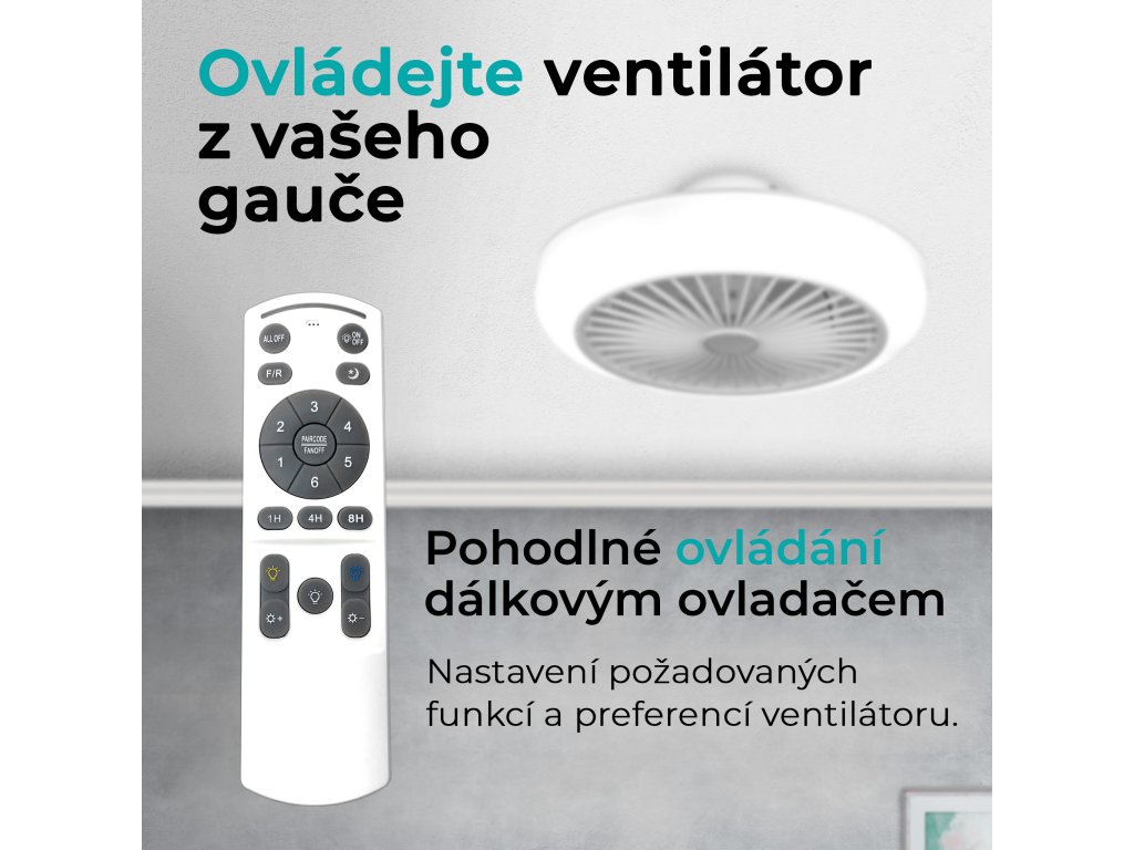 Pomocí těchto funkcí se ze stropního ventilátoru hravě stane lustr, který plnohodnotně osvítí a zároveň ochladí místnost. To vše je součástí tohoto stropního ventilátoru se světlem.