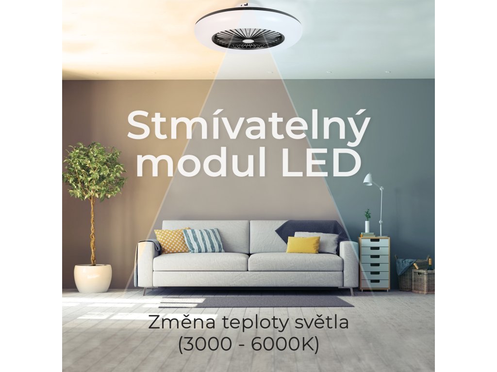 Nedílnou součástí stropního ventilátoru je jeho osvětlení. Nejedná se ale o obyčejné světlo, jako u konkurenčních výrobků, jelikož jej lze pohodlně regulovat pomocí dálkového ovládání. Barvu světla tak můžete měnit podle denní doby, nebo jednoduše podle nálady. Další zajímavou funkcí je tzv. stmívání, která umožňuje nastavení si ideálního odstínu dle potřeby.