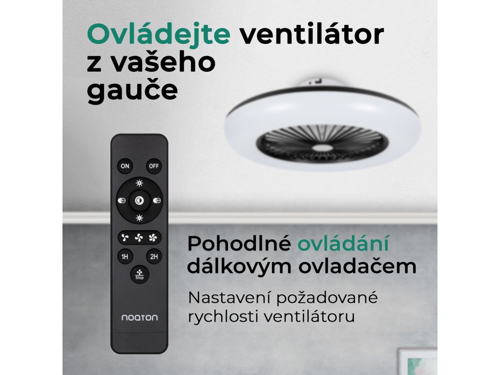 Stropní ventilátor Calisto od značky Noaton je vybaven dálkovým ovládáním. To nevyžaduje žádné speciální párování a můžete jej tak používat hned po namontování ventilátoru.