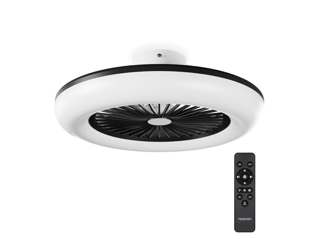 Ventilátor se světlem značky Noaton je praktický pomocník nejen v horkých letních dnech. Pyšní se 5 lopatkami (materiál ABS), které je možné pohánět hned ve 3 rychlostních stupních, regulovatelným světlem (se světelným tokem 100 lm/W) a funkcí časovače. To vše je v přístroji, který je nejen úsporný (maximální příkon motoru je 35 W), ale i lehký a tím pádem jej lze umístit téměř kamkoliv (dokonce i na zeď, tedy pod úhel 90°).