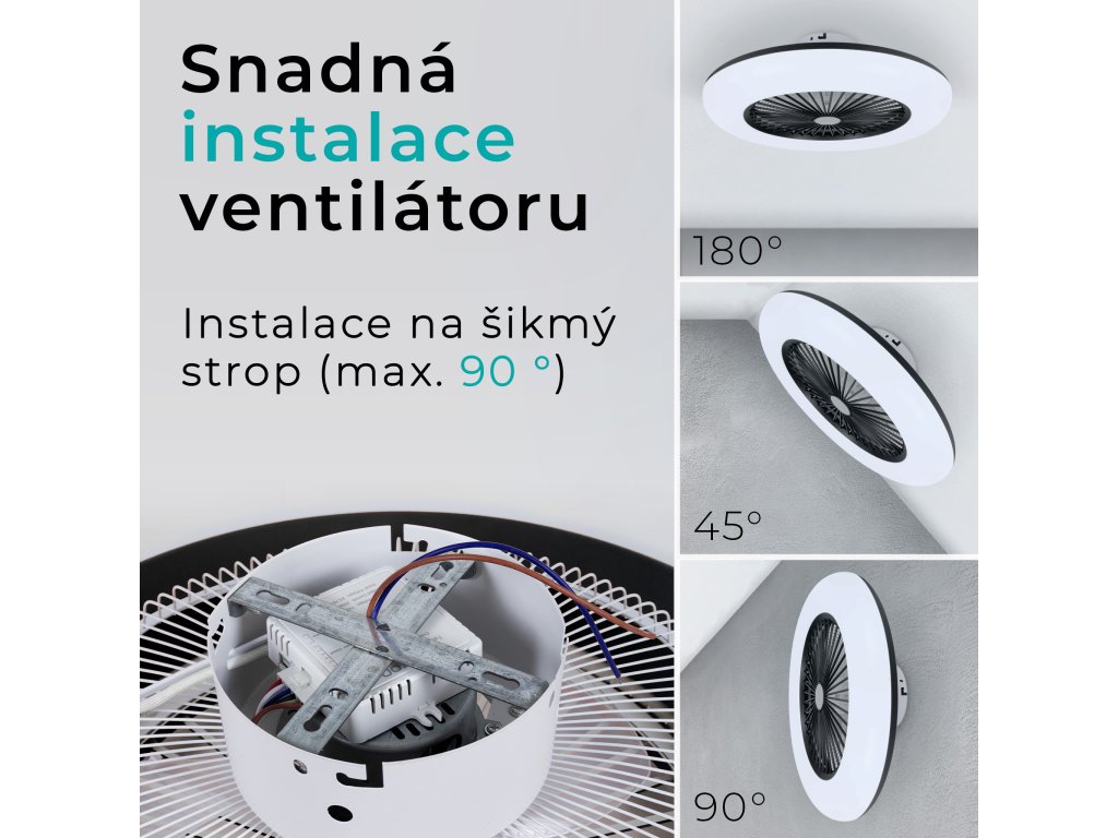 Barva ventilátoru je černá a hodí se tak prakticky všude, ať už do pracovního, či obytného interiéru. Samotné lopatky jsou navíc chráněny robustním tělem ventilátoru a zamezují tak případné riziko poranění. Přístroj je dodáván včetně dálkového ovládání.