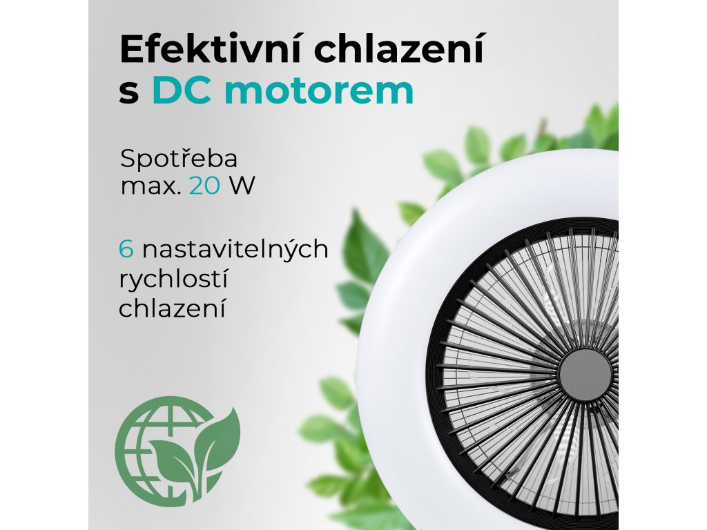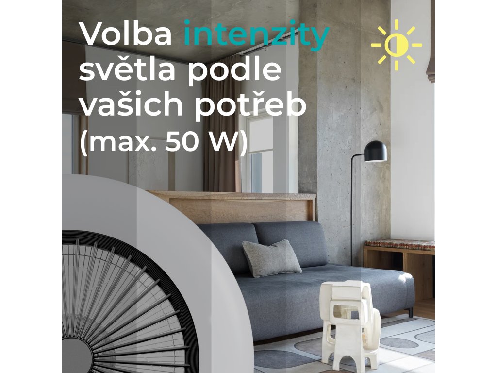 Nedílnou součástí stropního ventilátoru je jeho osvětlení. Nejedná se ale o obyčejné světlo, jako u konkurenčních výrobků, jelikož jej lze pohodlně regulovat pomocí dálkového ovládání. Barvu světla tak můžete měnit podle denní doby, nebo jednoduše podle nálady. Další zajímavou funkcí je tzv. stmívání, která umožňuje nastavení si ideálního odstínu dle potřeby.