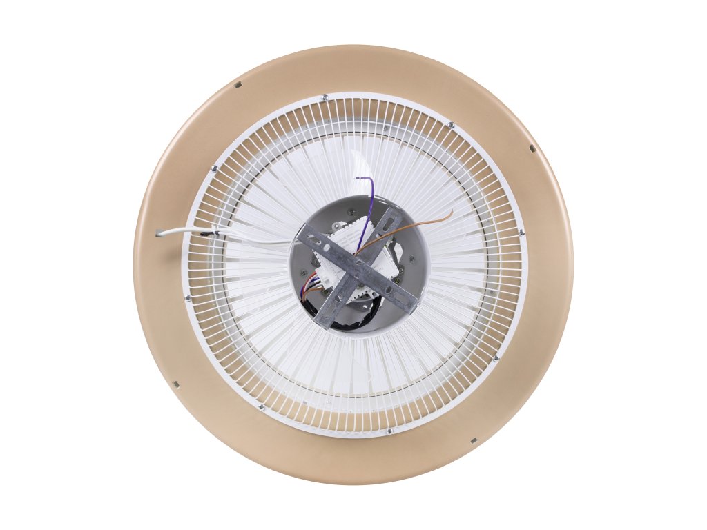 Barva ventilátoru je zlatá a hodí se tak prakticky všude, ať už do pracovního, či obytného interiéru. Samotné lopatky jsou navíc chráněny robustním tělem ventilátoru a zamezují tak případné riziko poranění. Přístroj je dodáván včetně dálkového ovládání.