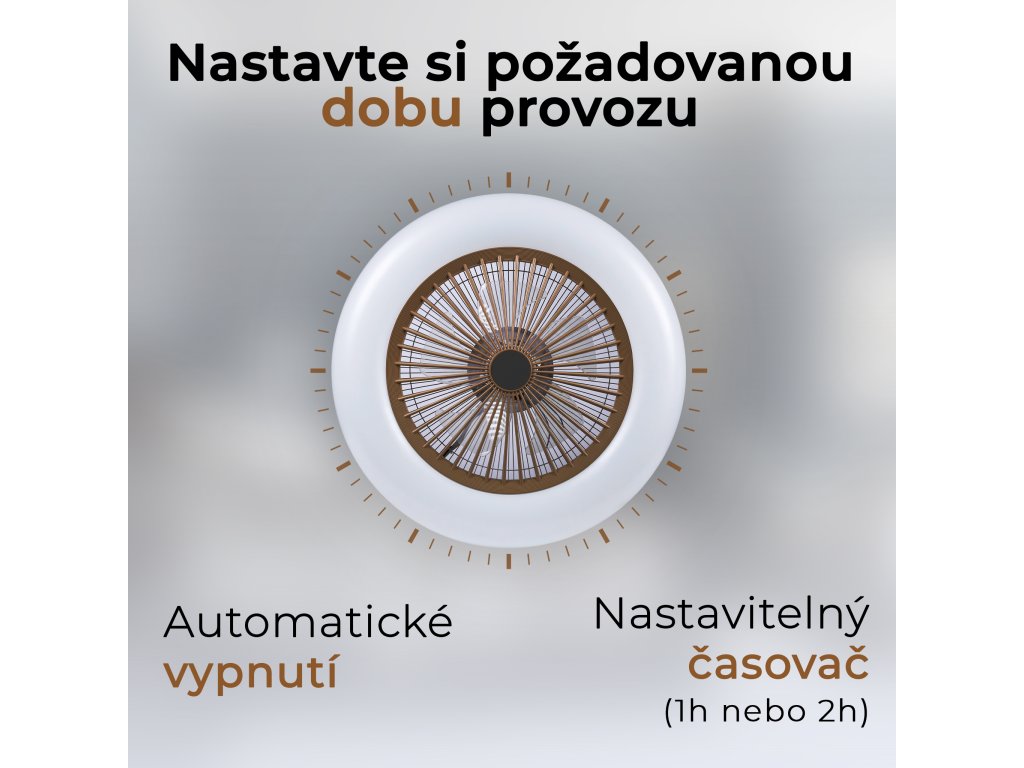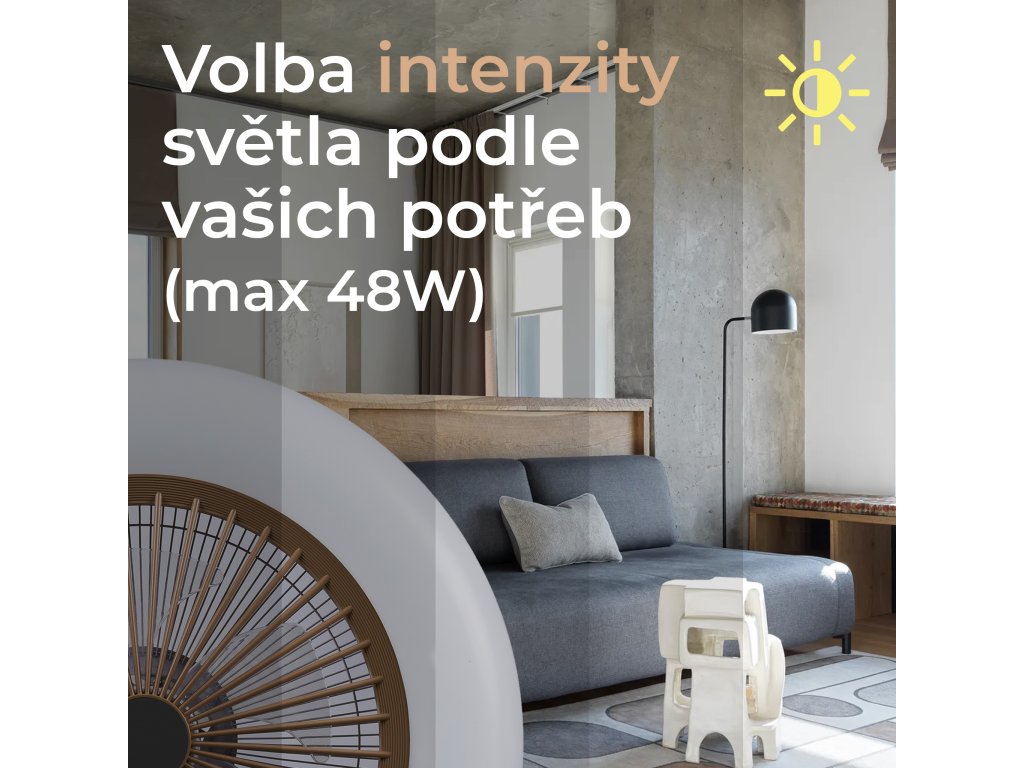 Nedílnou součástí stropního ventilátoru je jeho osvětlení. Nejedná se ale o obyčejné světlo, jako u konkurenčních výrobků, jelikož jej lze pohodlně regulovat pomocí dálkového ovládání. Barvu světla tak můžete měnit podle denní doby, nebo jednoduše podle nálady. Další zajímavou funkcí je tzv. stmívání, která umožňuje nastavení si ideálního odstínu dle potřeby.