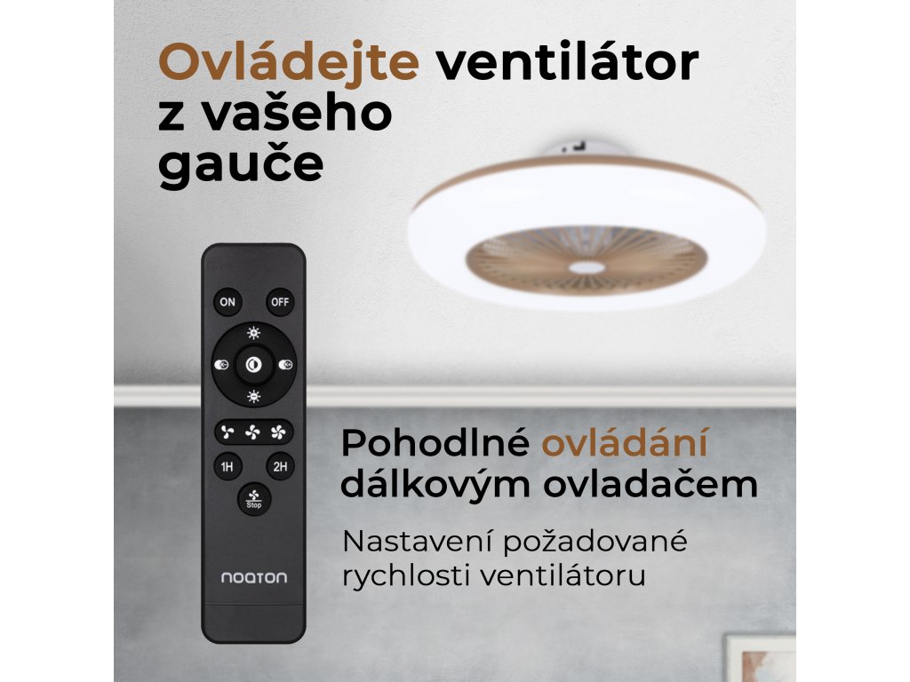 Stropní ventilátor Calisto od značky Noaton je vybaven dálkovým ovládáním. To nevyžaduje žádné speciální párování a můžete jej tak používat hned po namontování ventilátoru.
