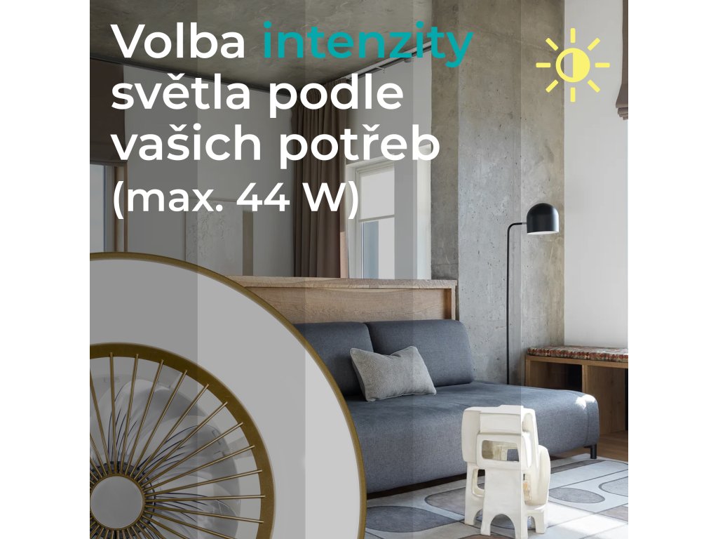 Nedílnou součástí stropního ventilátoru je jeho osvětlení. Nejedná se ale o obyčejné světlo, jako u konkurenčních výrobků, jelikož jej lze pohodlně regulovat pomocí dálkového ovládání. Světlo tak můžete měnit podle denní doby, nebo jednoduše podle nálady. Další zajímavou funkcí je tzv. stmívání, která umožňuje nastavení si ideální odstín dle potřeby.