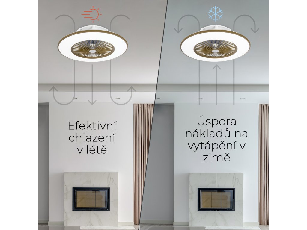 Nedílnou součástí stropního ventilátoru je jeho osvětlení. Nejedná se ale o obyčejné světlo, jako u konkurenčních výrobků, jelikož jej lze pohodlně regulovat pomocí dálkového ovládání. Světlo tak můžete měnit podle denní doby, nebo jednoduše podle nálady. Další zajímavou funkcí je tzv. stmívání, která umožňuje nastavení si ideální odstín dle potřeby.