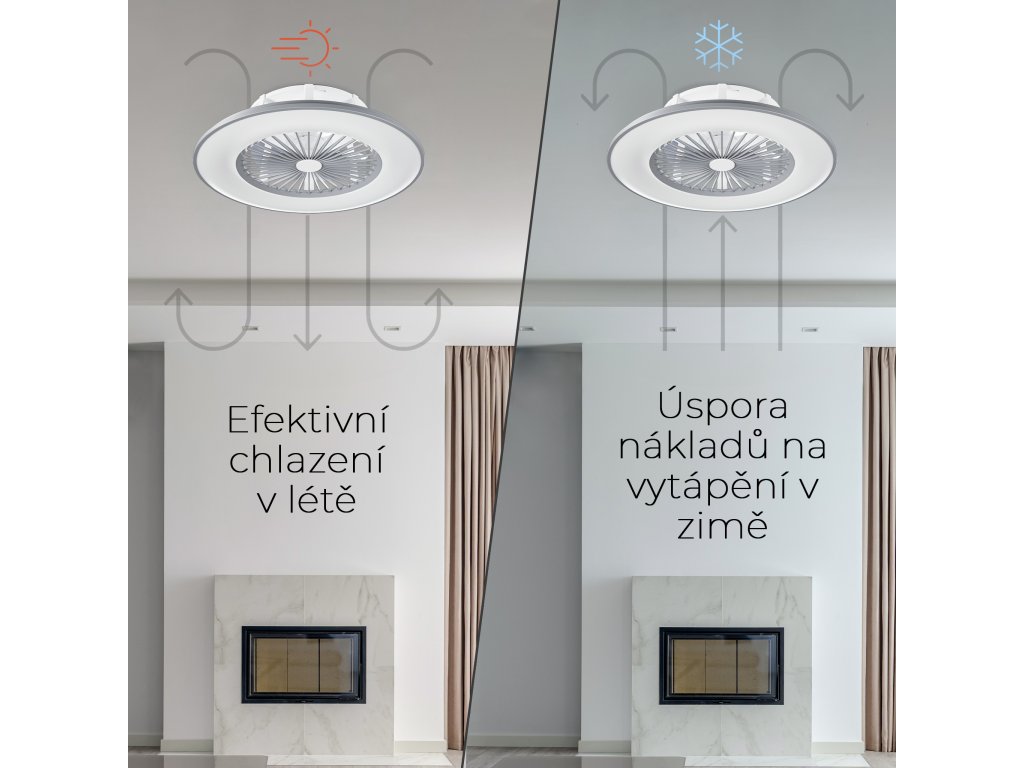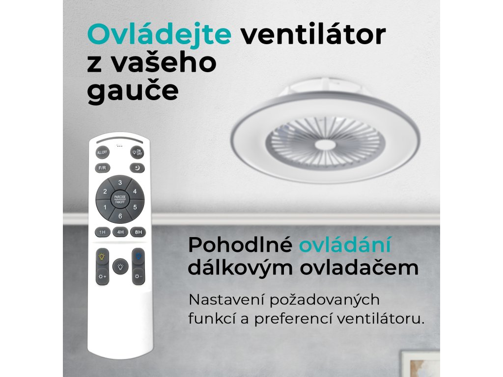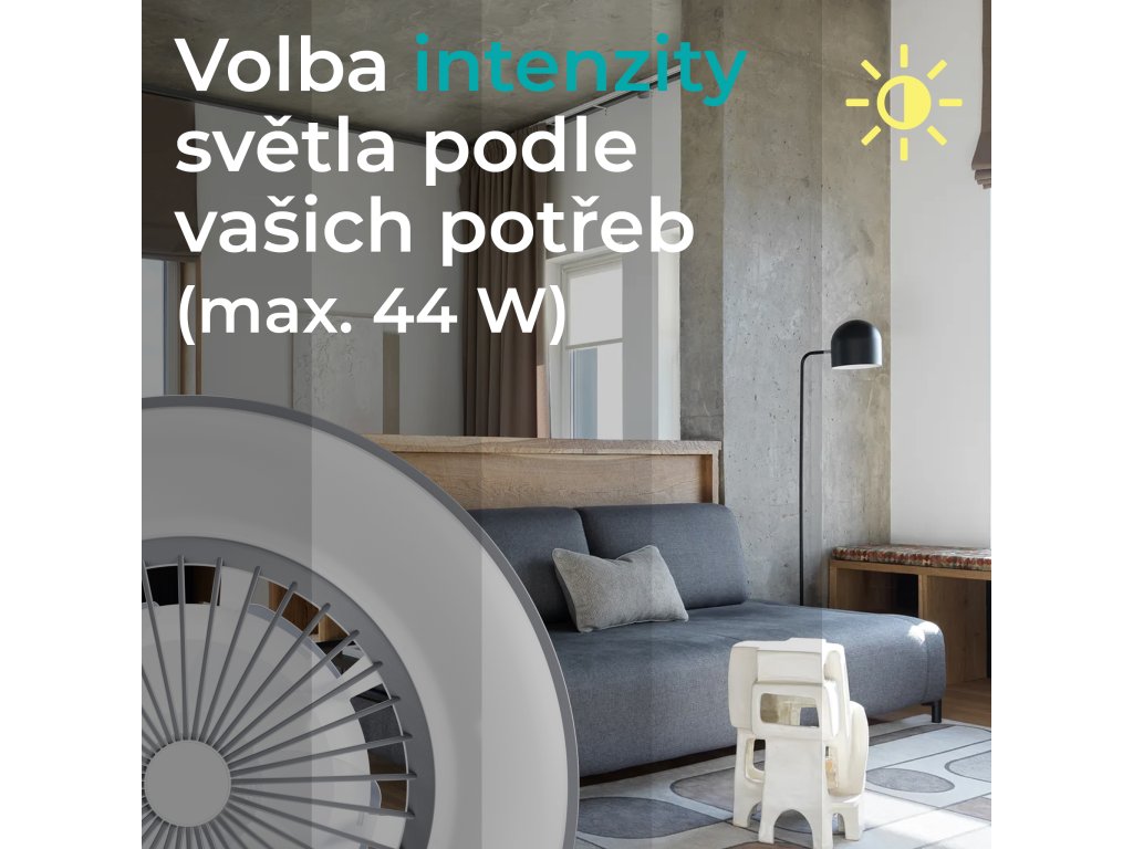 Nedílnou součástí stropního ventilátoru je jeho osvětlení. Nejedná se ale o obyčejné světlo, jako u konkurenčních výrobků, jelikož jej lze pohodlně regulovat pomocí dálkového ovládání. Světlo tak můžete měnit podle denní doby, nebo jednoduše podle nálady. Další zajímavou funkcí je tzv. stmívání, která umožňuje nastavení si ideální odstín dle potřeby.
