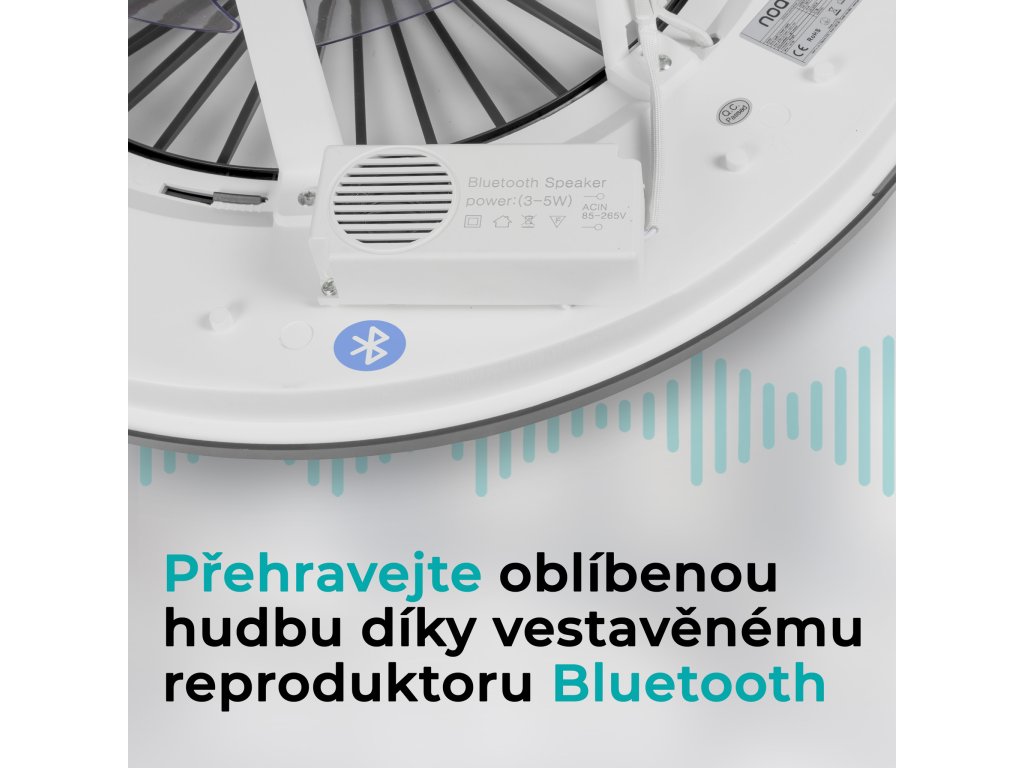 Pomocí těchto funkcí se ze stropního ventilátoru hravě stane lustr, který plnohodnotně osvítí a zároveň ochladí místnost. Aby toho nebylo málo, můžete se přitom ochladit a u toho si rovnou poslechnout vaši oblíbenou hudbu.