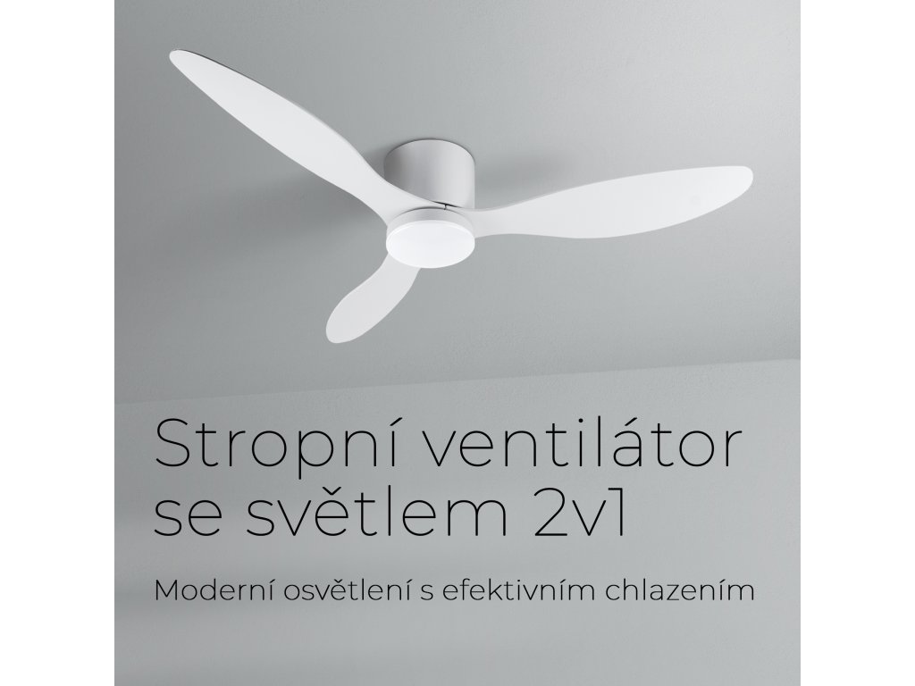 Dálkové ovládání umožňuje snadné ovládání ventilátoru i osvětlení. Dále má také funkci zpětného (zimního) chodu, která oceníte při chladnějších dnech. Celková spotřeba motoru se pohybuje v rozmezí 6 - 40 W a otáčky za minutu nabízejí rychlosti v rozmezí 107 - 205.