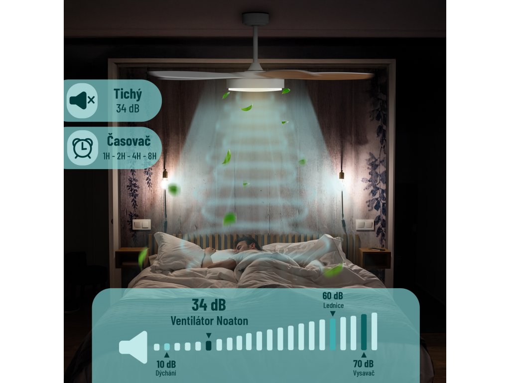 Noaton 12132WWB Maia, bílá a javor, stropní ventilátor se světlem (Rozbaleno)