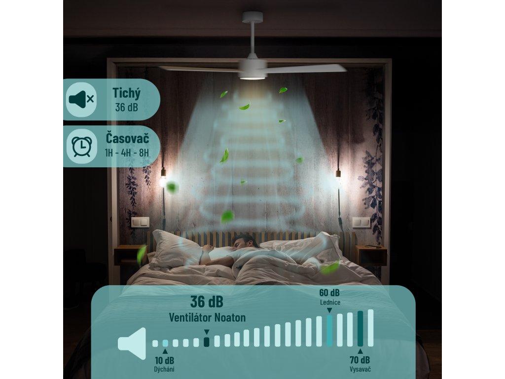 Navíc díky svým vlastnostem nabízí plynulejší regulaci otáček a hlavně běží opravdu tiše. V nízkých otáčkách má ventilátor pouhých 36 dB, což je tišší než například vaše lednice. A to rozhodně oceníte v parných nocích pro příjemnější a nerušený spánek.