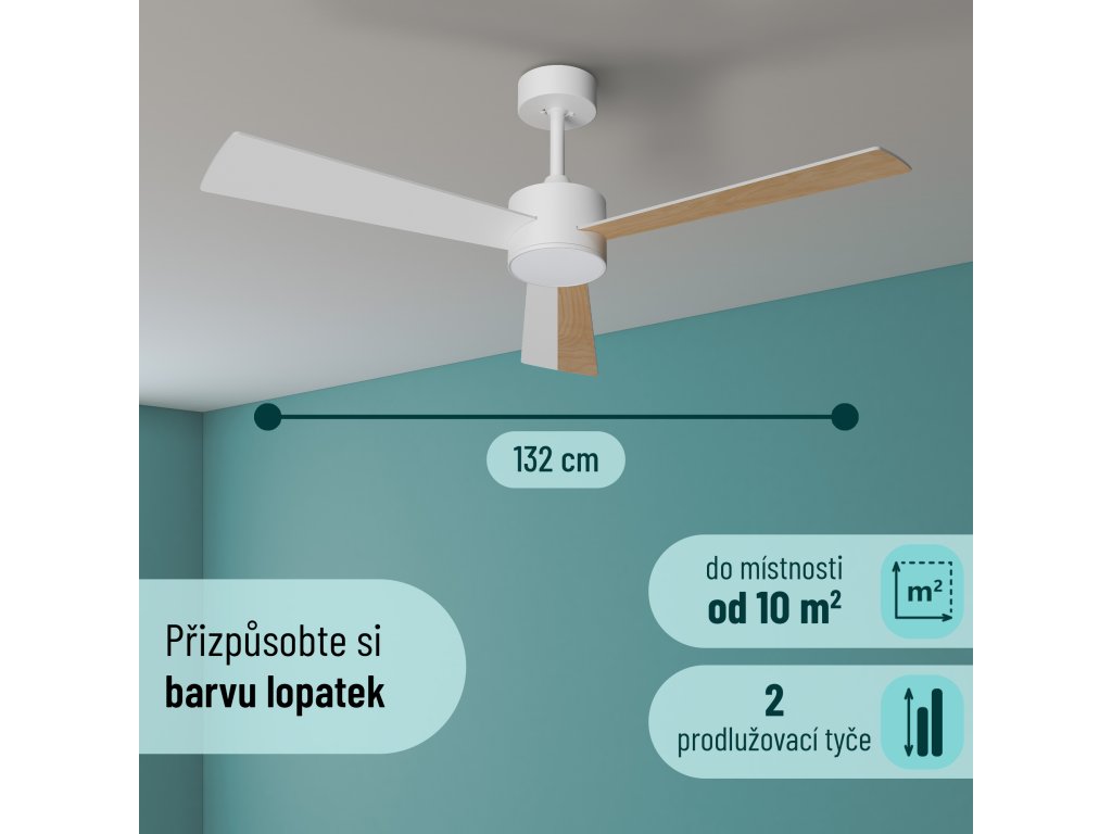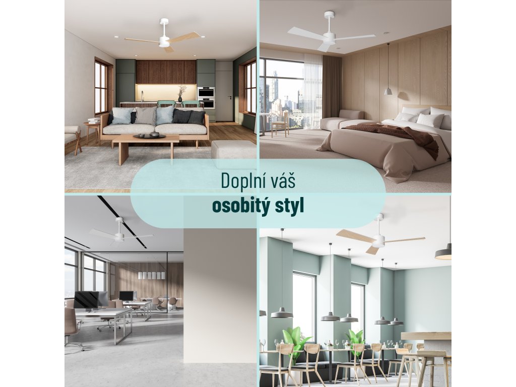 S našim ventilátorem se nemusíte spokojit pouze s jedním barevným provedením. Lepus nabízí dvoubarevné řešení díky oboustranným lopatkám. Můžete si vybrat mezi preferencí bílé klasiky nebo elegantního světlého dřeva, a vybrat takovou kombinaci, která bude ladil právě s vaším interiérem.