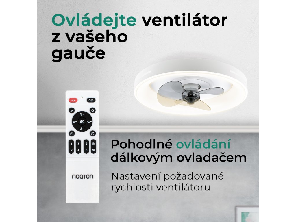 Stropní ventilátor Furud od značky Noaton je vybaven dálkovým ovládáním. To nevyžaduje žádné speciální párování a můžete jej tak používat hned po namontování ventilátoru.