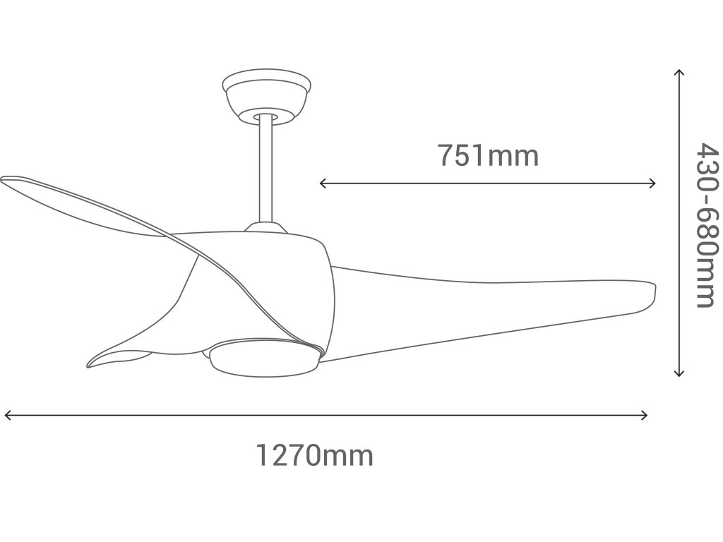 Vzdálenost lopatek od podlahy se z bezpečnostních důvodů doporučuje minimálně 2 m 20 cm. Lopatky umístěné cca 3 m nad zemí začínají mít sníženou účinnost. V případě použití prodlužovací tyče je nahrazena původní tyč v balení. Prodlužovací tyče se dají zkrátit bez ztráty záruky.