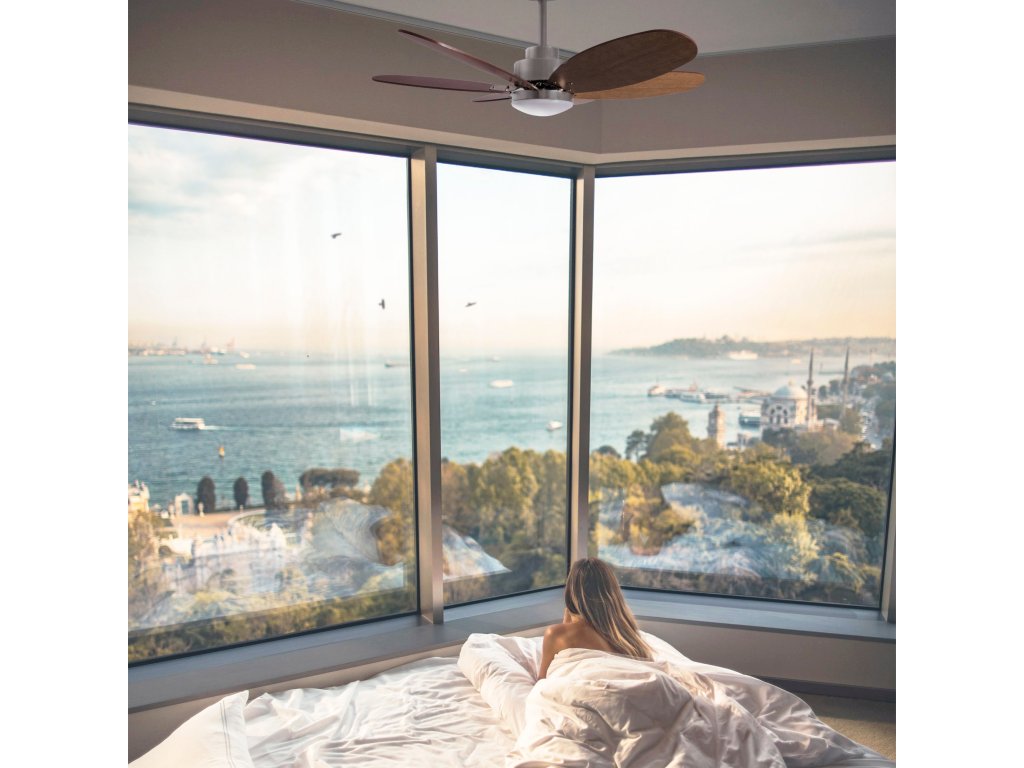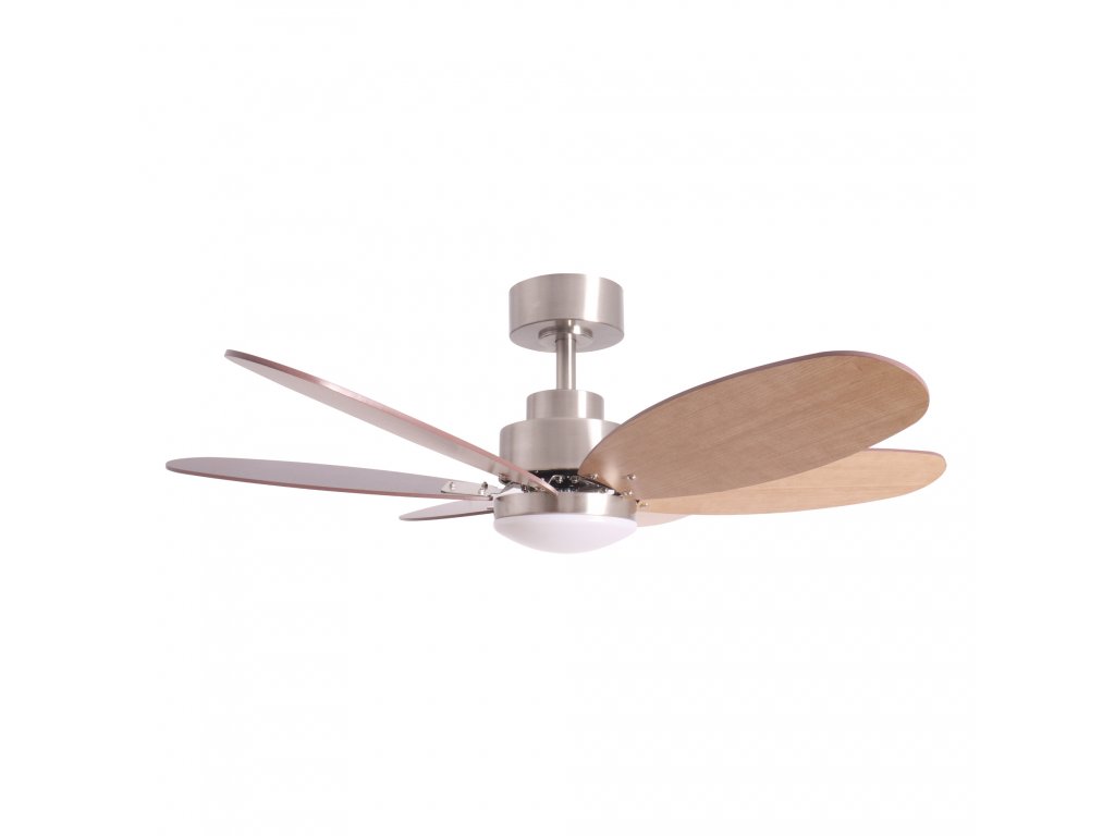 Stropní ventilátor Sulion 1694512 Rainbow M s oboustrannými lopatkami v barvách tmavě hnědá a světle hnědá. Lopatky se dají otočit kteroukoli stranou dolů a lze tak vytvořit 2 barevné kombinace. Těleso je z kovu a má stříbrnou. Osvětlení zajišťuje světelný zdroj LED o síle 18W. Je vhodný pro místnosti o velikosti do 14 m2. Reverzní lopatky umožňují oteplování místnosti v zimě - zimní (zpětný) chod stropního ventilátoru tlačí teplý vzduch od stropu dolů. Ventilátor je možné namontovat bez tyče, nebo s tyčí, také na lehce šikmý strop.
