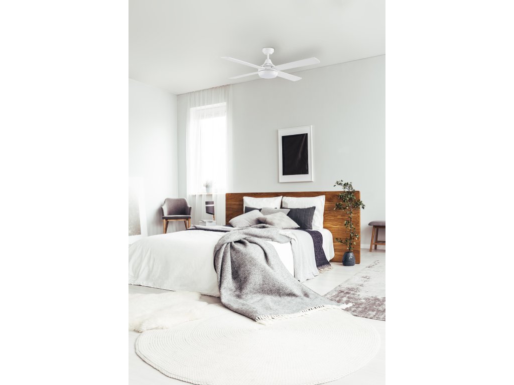Stropní ventilátor Martec Link v bílé barvě. Těleso je z kovu a má bílou barvu. Osvětlení zajišťuje LED o síle 15W. Je vhodný pro místnosti o velikosti 14 - 20 m2. Reverzní lopatky umožňují oteplování místnosti v zimě - zimní (zpětný) chod stropního ventilátoru tlačí teplý vzduch od stropu dolů. Ventilátor lze instalovat na šikmý strop (max 15°).