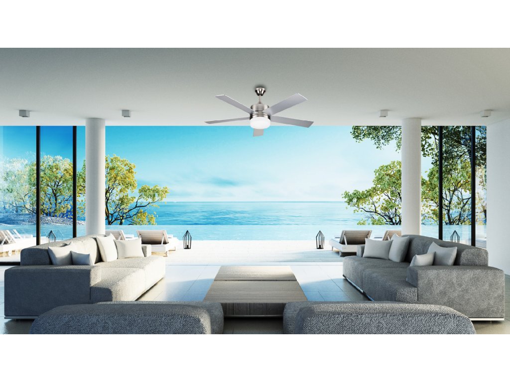 Stropní ventilátor Sulion Denel se světlem. Ovládá se dálkovým ovládáním. Reverzní lopatky umožňují ochlazování v létě a oteplování místnosti v zimě - zimní (zpětný) chod stropního ventilátoru tlačí teplý vzduch od stropu dolů. Oboustranné lopatky se dají otočit kteroukoli stranou dolů a lze tak vytvořit 2 barevné kombinace. V balení je jedna tyč. Vzdálenost lopatek od stropu s použitím tyče je 47 cm. Sulion Denelje možné namontovat na lehce šikmý strop pod úhlem max 17°. U nižších stropu lze provést montáž bez tyče. Stínítko je z matného skla. Motor má 5-ti letou záruku.