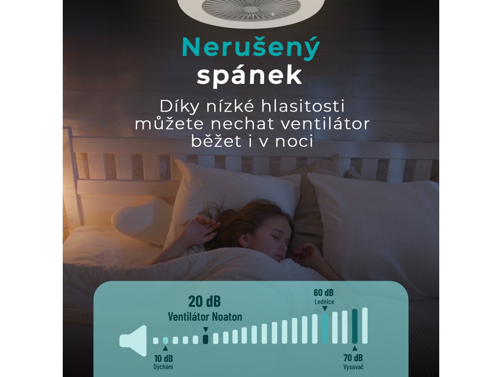 Elegantní stropní světlo Noaton Callisto 11055WL kombinuje LED osvětlení s praktickým ventilátorem. Největší předností tohoto zařízení je plně regulovatelné LED osvětlení, které si můžete přizpůsobit přesně podle svých potřeb. Pomocí dálkového ovládání snadno nastavíte nejen intenzitu světla, ale také jeho barevnou teplotu – od studené bílé pro aktivní denní režim až po teplé tóny vhodné k večernímu odpočinku. Nechybí ani praktická funkce stmívání, která umožní vytvořit příjemnou atmosféru v každé situaci.