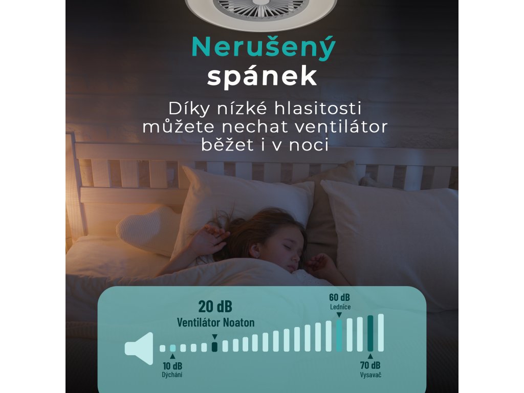 Elegantní stropní světlo Noaton 11056GRL Vega kombinuje LED osvětlení s praktickým ventilátorem. Největší předností tohoto zařízení je plně regulovatelné LED osvětlení, které si můžete přizpůsobit přesně podle svých potřeb. Pomocí dálkového ovládání snadno nastavíte nejen intenzitu světla, ale také jeho barevnou teplotu – od studené bílé pro aktivní denní režim až po teplé tóny vhodné k večernímu odpočinku. Nechybí ani praktická funkce stmívání, která umožní vytvořit příjemnou atmosféru v každé situaci.