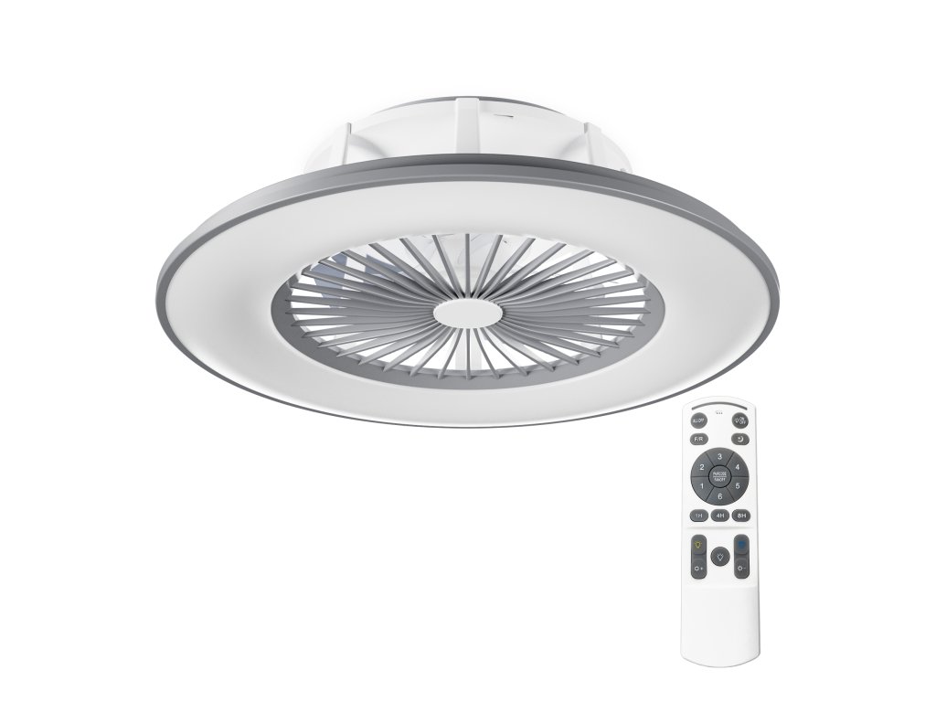Vestavěný ventilátor s 8 lopatkami z odolného ABS materiálu nabízí 6 úrovní výkonu a tichý provoz. Díky nízké hmotnosti a úspornému chodu (maximální příkon motoru je 20W) je možné tento lustr s ventilátorem instalovat i na stěnu pod úhlem 90°. Samotné lopatky jsou navíc chráněny robustním tělem svítidla a zamezují tak případné riziko poranění.